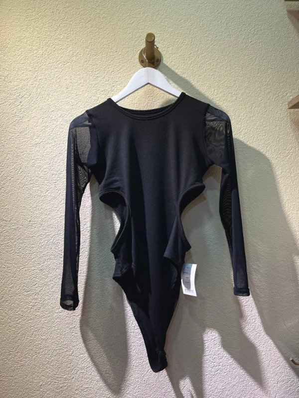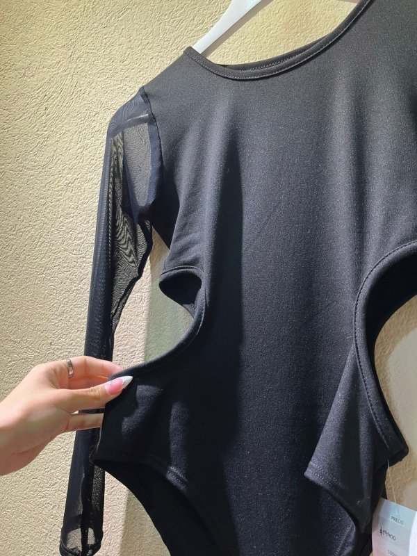 El Body Eclipse combina el poder del negro con transparencias sutiles en las mangas y recortes laterales que estilizan la silueta. Su tejido elástico se adapta al cuerpo y su diseño cerrado en el frente lo vuelve sofisticado sin perder el toque audaz.
