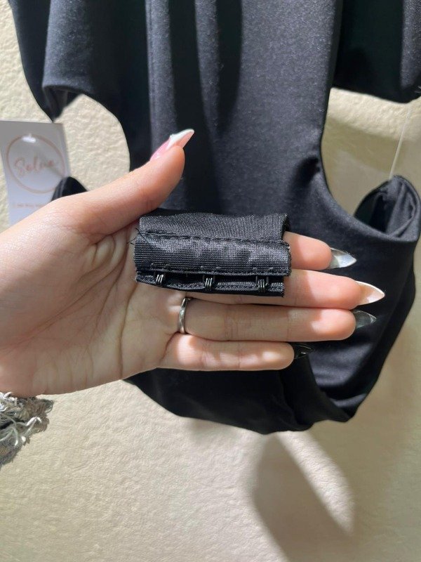 Posee cierres tipo corchete en la parte inferior y una estructura reforzada que brinda soporte. Ideal para looks de noche o salidas con actitud — combinalo con pantalones sastreros o cuero para un outfit de impacto.