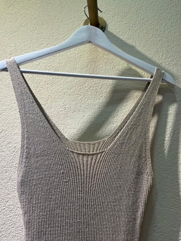 Confeccionado en tejido acanalado elástico, se adapta al cuerpo realzando la silueta con un calce suave y favorecedor.